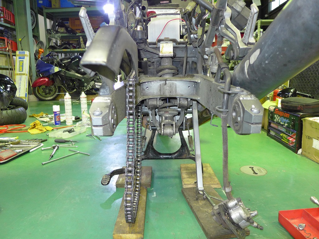 ゲイルスピードホイール、オーリンズリヤショック取り付け、