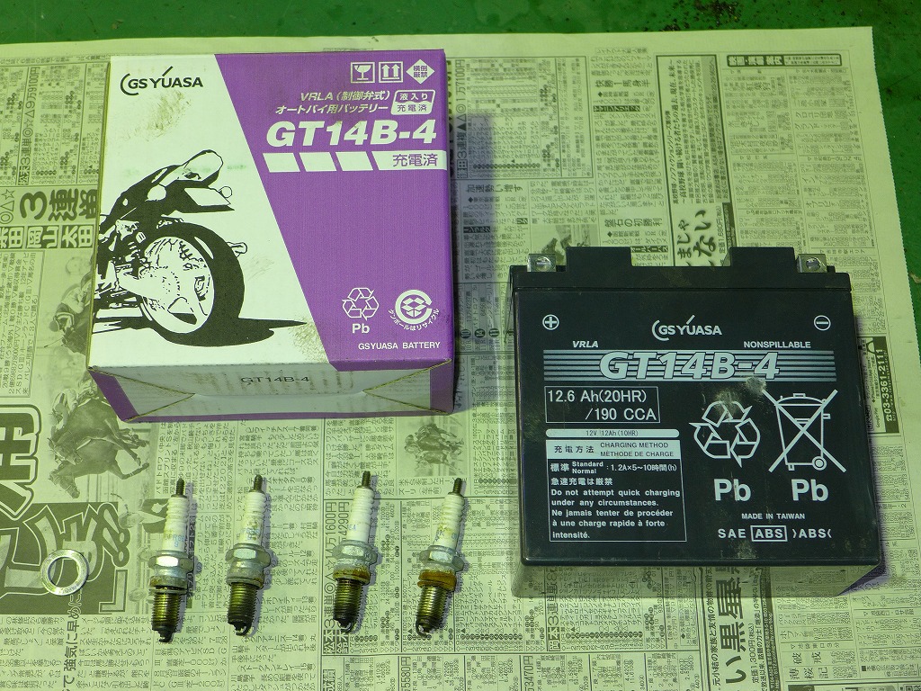 メンテナンス内容は、バッテリー、エンジンオイル、プラグ交換、チェーン清掃です