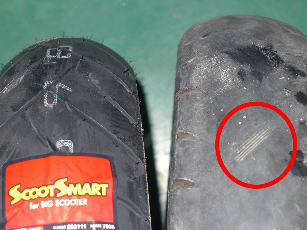溝が無い、ヒビ、空気圧不足等は非常に危険です