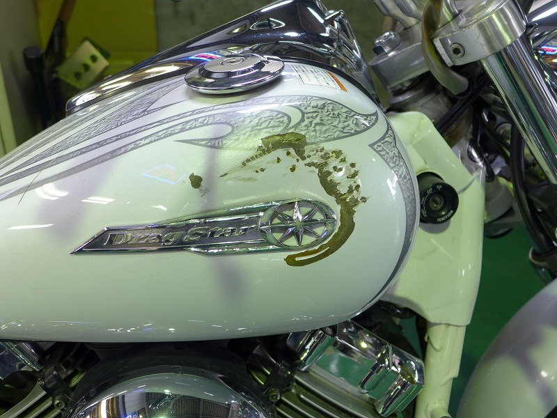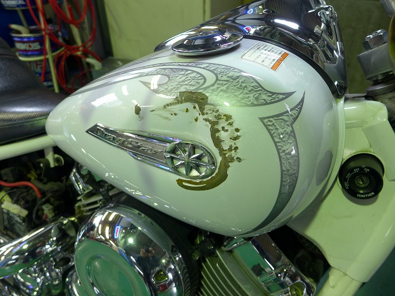 タンクにキズ、凹みが有りましたので修正、ペイント