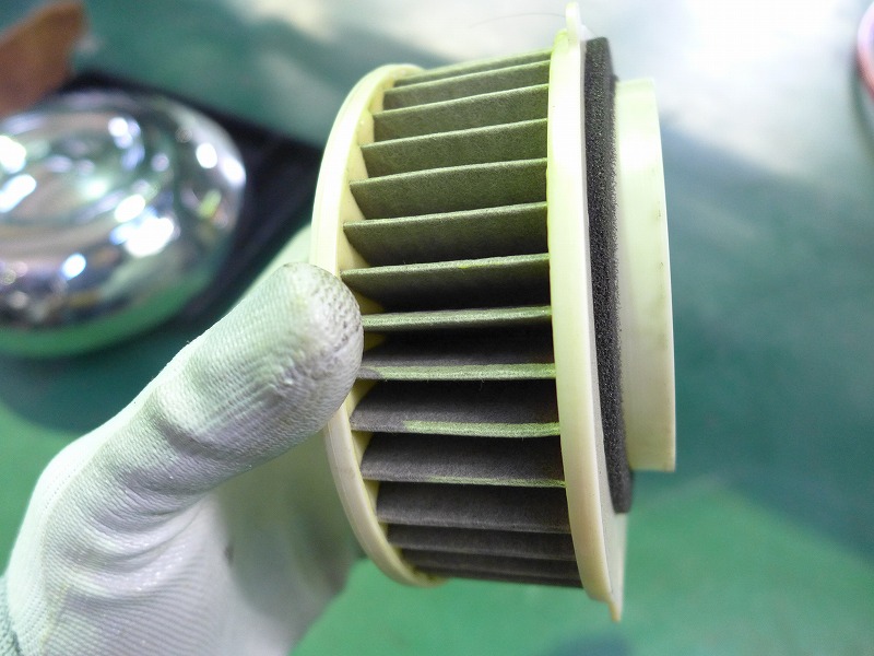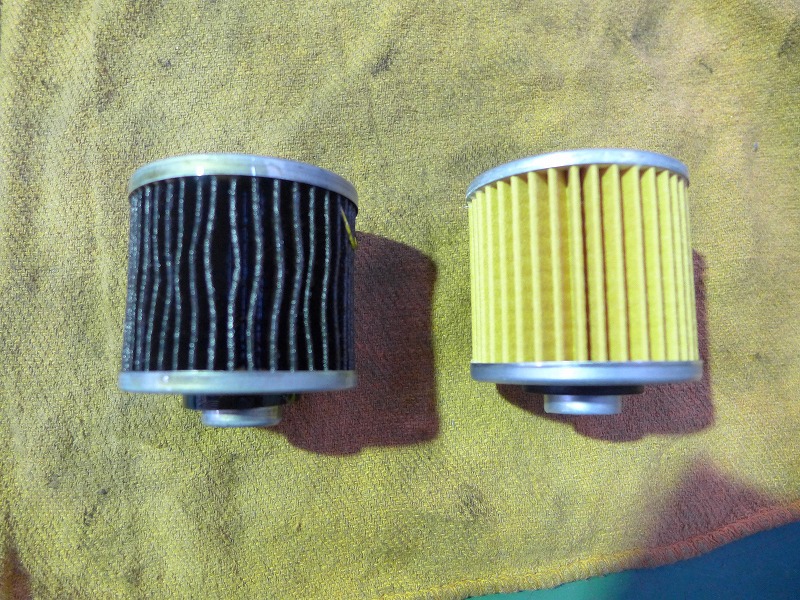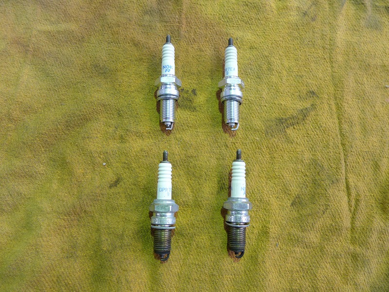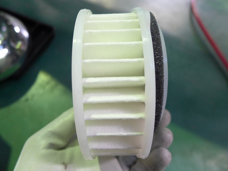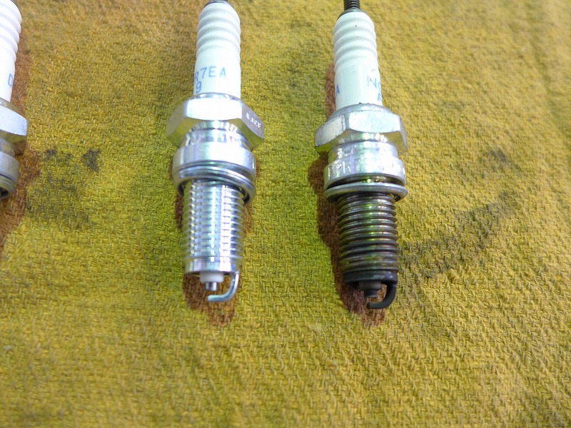 プラグ、エアクリーナー交換、新品と比べると良く汚れが分かります。
