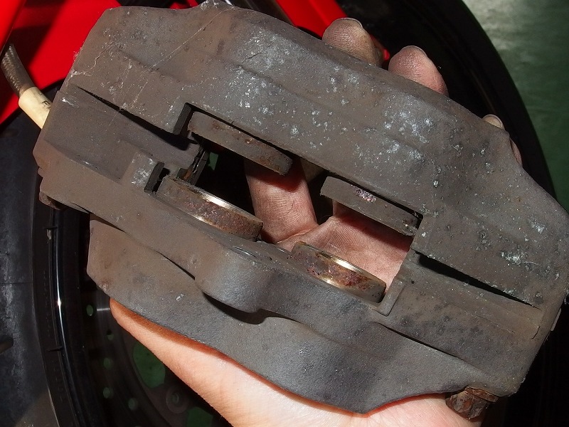 FRブレーキパット交換、FRキャリパー清掃