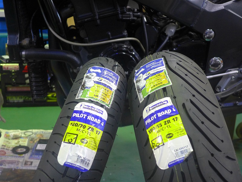 タイヤ交換今回お選び頂いたタイヤはミシュランのパイロットロード4です。