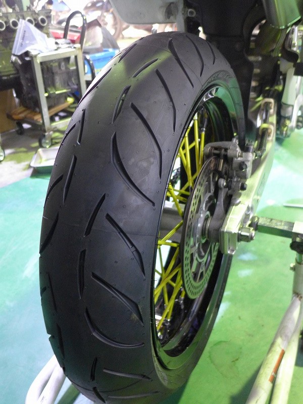 いつもお世話になっておりますK様のDR-Z400モタード タイヤ交換です。