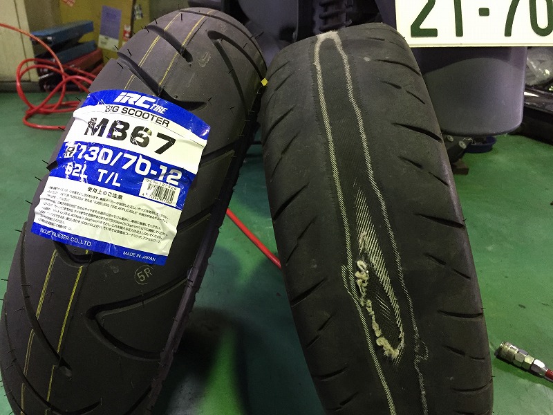 フォルツァZ リヤタイヤ交換です。
