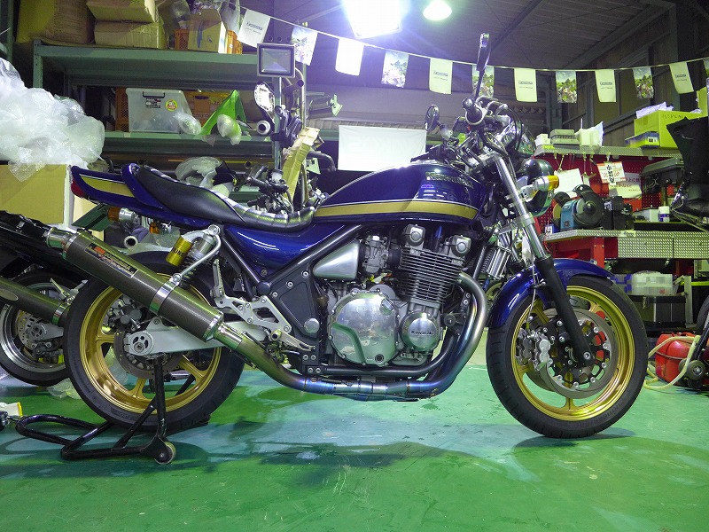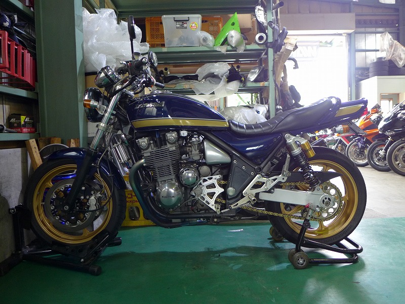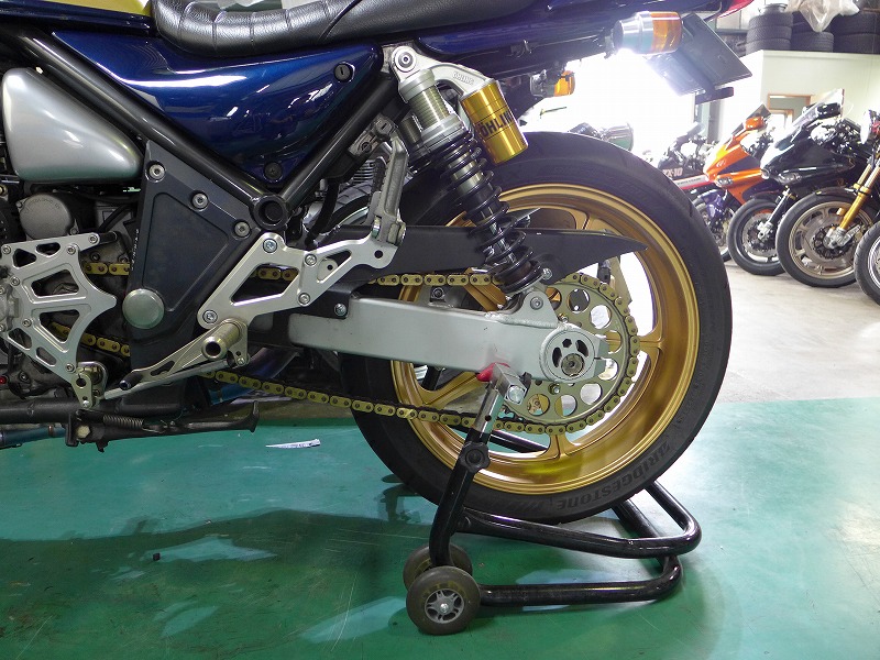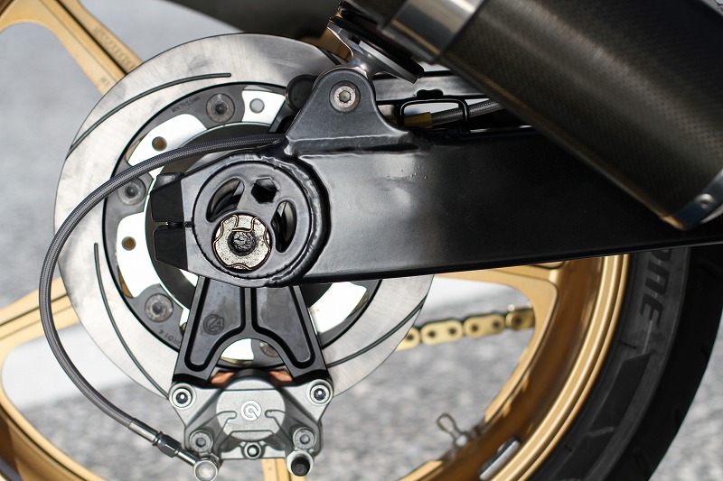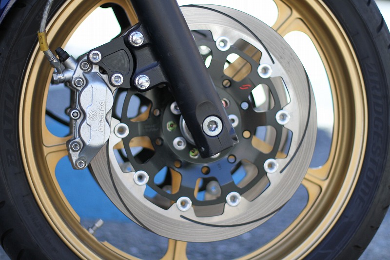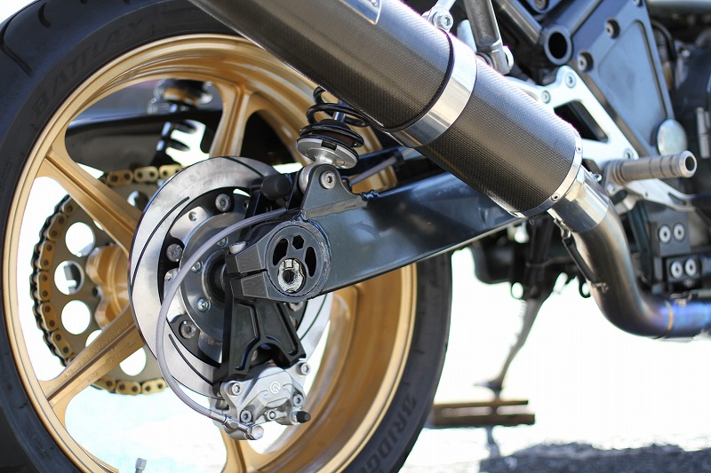 ゼファー1100RSのスイングアームペイント、ブレンボキャリパー、サンスターディスク取り付けです。