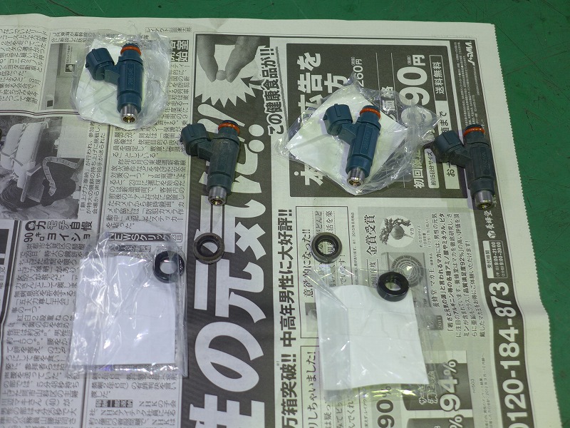 今回は、インジェクションノズル交換、スロットルボディ清掃、エンジンオイル、エアクリーナーエレメント、Rタイヤ交換です。