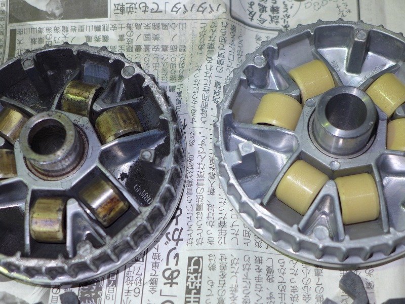 ケースを清掃しベルト、ウェイトローラーを交換します