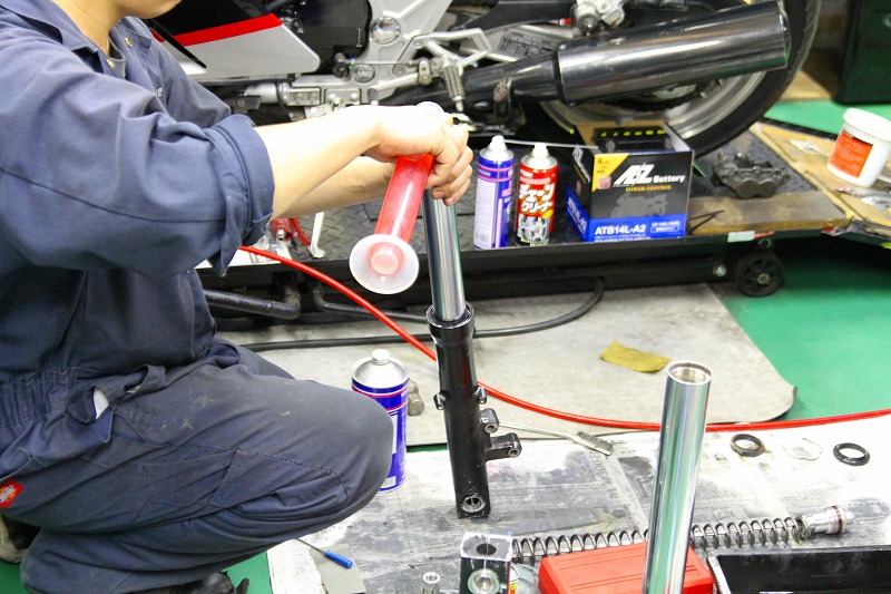 FRブレーキパット、プラグ、フロントフォークOH、キャブレターOH、オイルプレッシャースイッチ