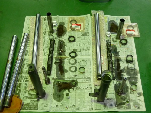 オイルも漏れていましたのでフォークOHです。