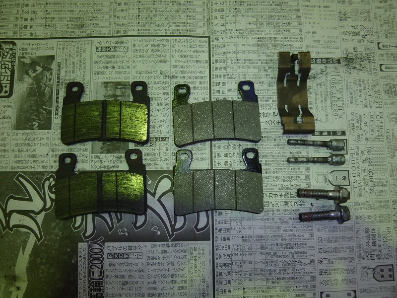 車検整備で交換部品は、FRブレーキパット、プラグ、エアクリーナーエレメント