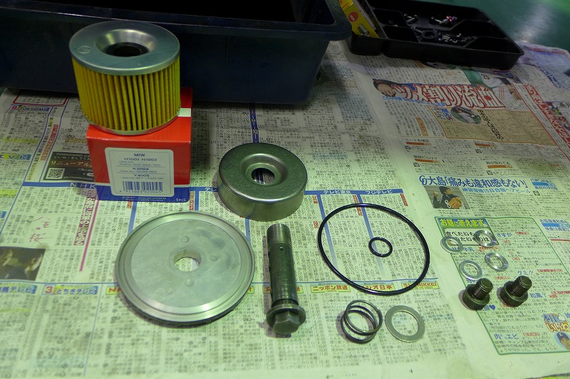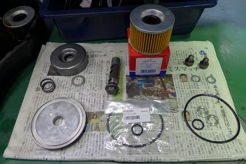 オイルフィルター、Oリング、ガスケットも新品に交換します。